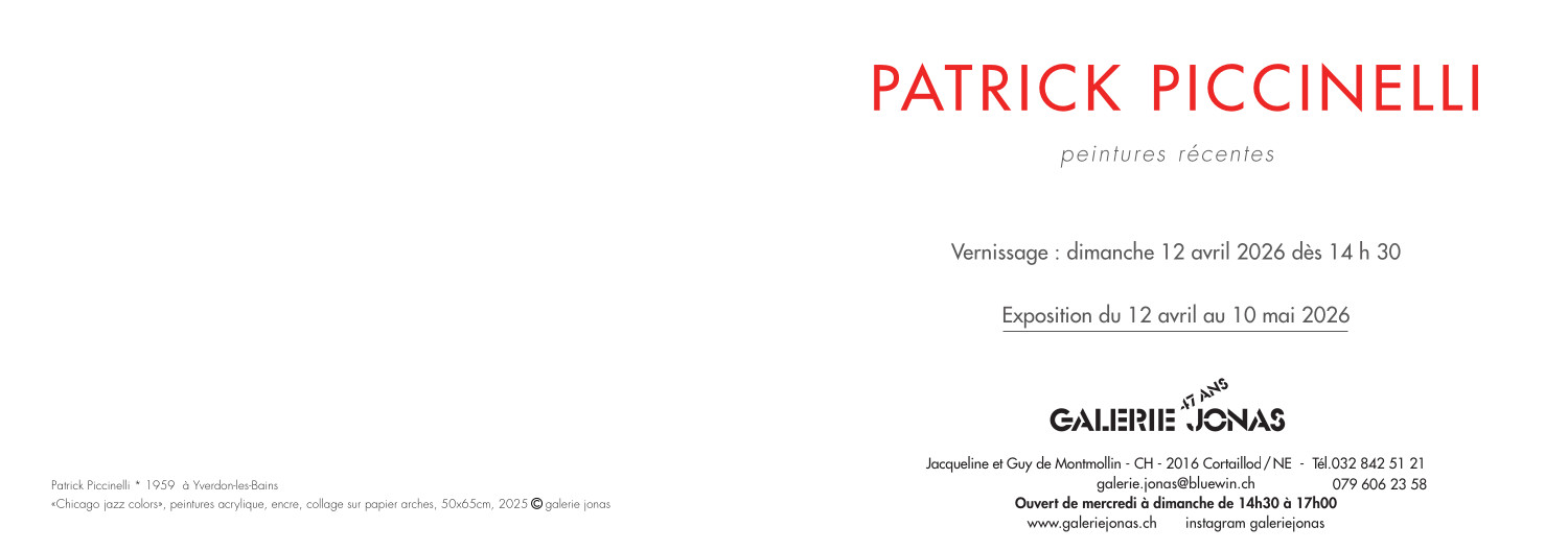 Vernissage : dimanche 12 avril 2026 dès 14 h 30